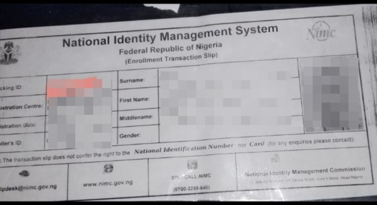A Standard NIN Slip is a document issued by the National Identity Management Commission (NIMC) in Nigeria that contains a unique National Identification Number (NIN) assigned to each citizen or legal resident.